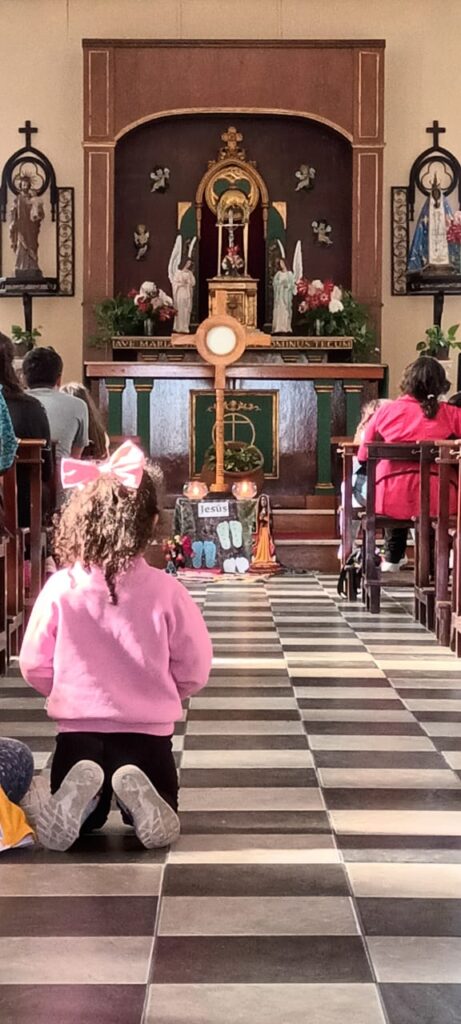 Dzieci z redemptorystowskiej parafii w Villa Angela w Argentynie, gdzie pracują misjonarze z naszej prowincji zakonnej, już po raz drugi wzięły udział w dniach 11-13 października 2024 r. w III Krajowym Spotkaniu Dzieci Adoratorów (Adorujących Najświętszy Sakrament). Warto w tym miejscu zaznaczyć, że od 2022 roku parafia cieszy się posiadaniem kaplicy wieczystej adoracji. Ten fakt zmotywował nas, aby utworzyć w ubiegłym roku grupę Dzieci Adoratorów.