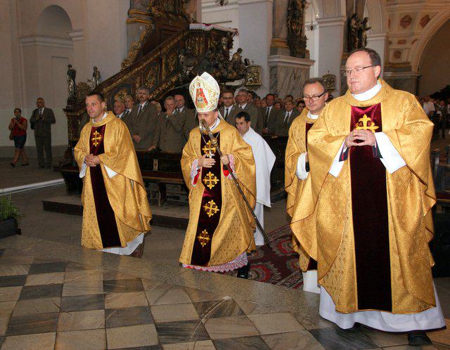 Pielgrzymka rozpoczęła się od uroczystego wejścia pocztów sztandarowych, asysty i koncelebransów do bardzkiej bazyliki przy akompaniamencie bardzkich organów, na których grał Maciej Bator i rogów myśliwskich. Piękne fanfary wykonał Reprezentacyjny Zespół Sygnalistów Myśliwskich Rabiec istniejący przy Zarządzie Okręgowym Polskiego Związku Łowieckiego w Piotrkowie Trybunalskim.