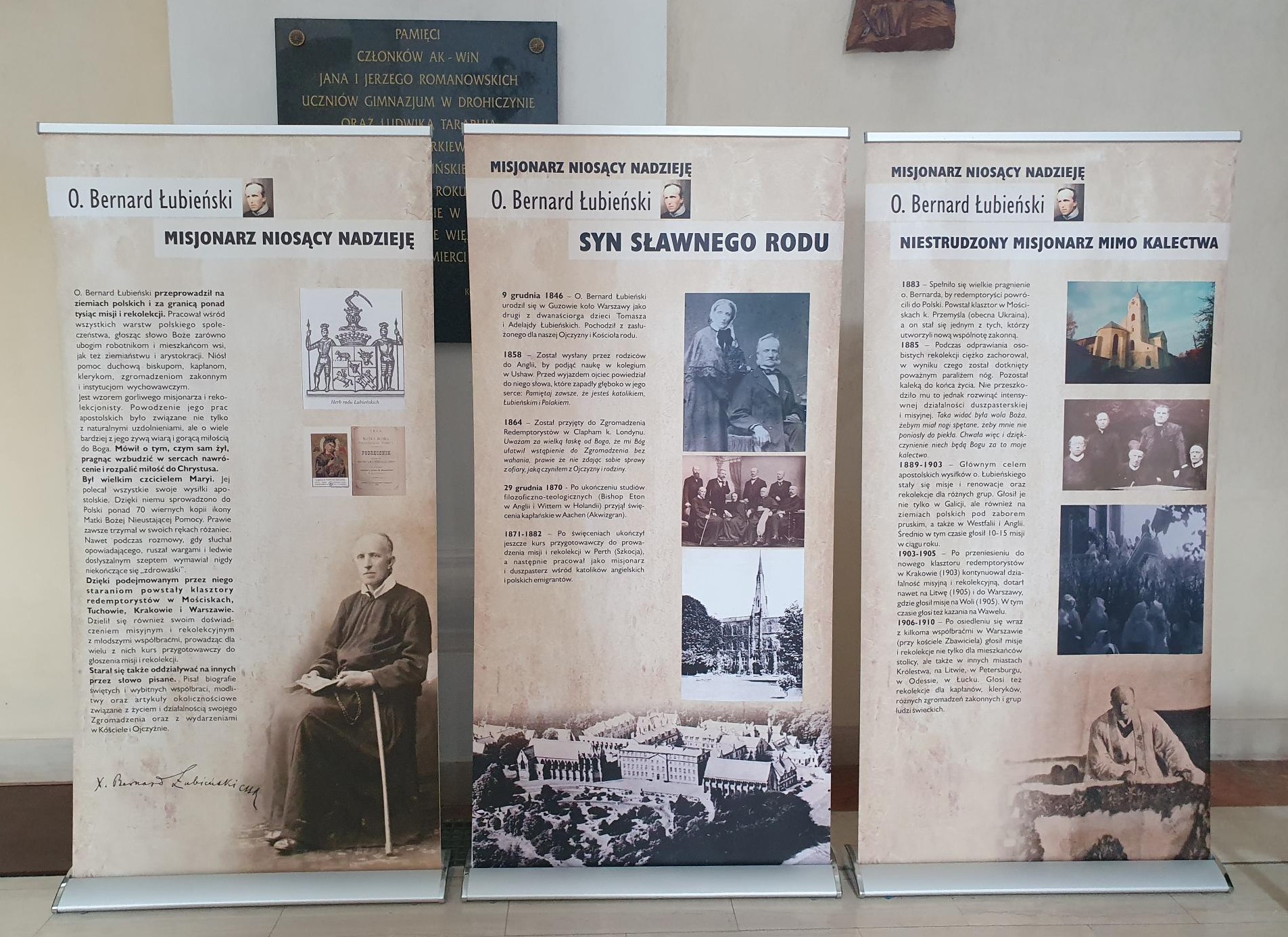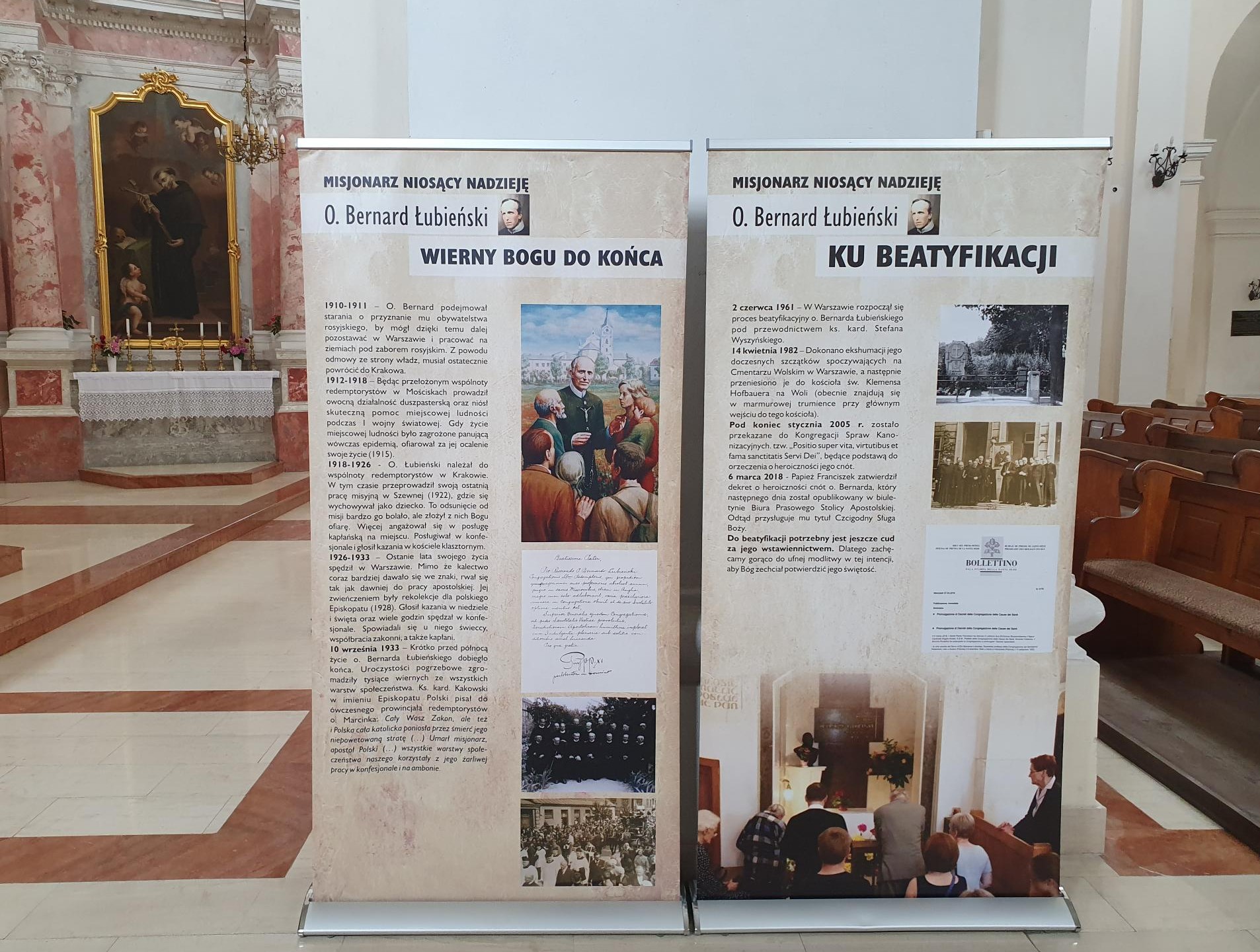 Ojcowie redemptoryści zachęcają zwiedzających do modlitwy o cud przez wstawiennictwo o. Bernarda Łubieńskiego, który jest potrzebny do ukończenia jego procesu beatyfikacyjnego. Dziękują też serdecznie księdzu proboszczowi Wiesławowi Niemyjskiemu za umożliwienie eksponowania tej wystawy.