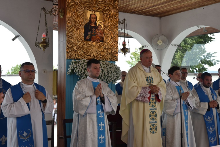 Z wszystkimi pielgrzymami modlił się bp Andrzej Jeż. W homilii akcentował, że powołania są sprawą całego Kościoła i wszyscy wierzący są odpowiedzialni za ich budzenie w sercach młodych ludzi. Zauważył jednak, że w jego czasach za powołanym stała rodzina, rówieśnicy, lokalna społeczność. – Młody człowiek idący za głosem powołania czuł wielkie oparcie w ludziach. Dzisiaj wydaje się go nie mieć, spotykając się z dezaprobatą najbliższych w domu, wyśmianiem przez rówieśników, narracją mediów i współczesnej kultury, która każe się wstydzić takich decyzji – mówił biskup, podkreślając, że młodzi podejmujący dzisiaj decyzję, by wstąpić do seminarium czy zakonu są przykładem radykalizmu i bohaterstwa.