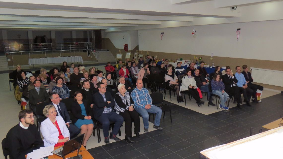 Uczestnicy Konkursu przyszli na podsumowanie wspólnie ze swoimi Rodzinami oraz znajomymi. Wszyscy mogli też podziwiać wystawę konkursowych prac, a po koncercie poczęstować się tradycyjnymi polskimi wypiekami: pączkami, faworkami, piernikiem, ciastem drożdżowym, które przygotowali uczestnicy. Uroczyste ogłoszenie wyników umilały swoim śpiewem byłe solistki parafialnego dziecięco-młodzieżowego zespołu „Liberamente” Julia Kricka oraz Anna Jadeszko. W ich wykonaniu zebrani usłyszeli takie pieśni i piosenki jak: „Polskie kwiaty”, „Nie lękajcie się”, „Kresowianka”, „Sen o Warszawie”, „Dziwny jest ten świat”, „Powrócisz tu” oraz inne. Anastazja Kłapatok zarecytowała wiersz Aleksandry Baltissen „Tradycja”. Weronika Popławska ze swoją uczennicą pięknie rysowały piaskiem kresowe zabytki Grodna, kościoły, postacie tworząc tym niepowtarzalne obrazki na temat „Polska tradycja w mojej Rodzinie”.