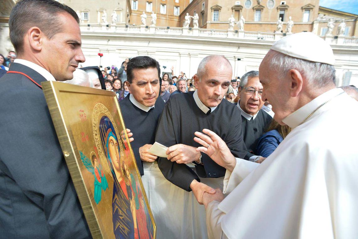 Podczas audiencji papieskiej w środę, 30 września 2015 r., Przełożony Generalny Zgromadzenia Redemptorystów o. Michael Brehl CSsR miał okazję spotkać się z papieżem Franciszkiem. O. Brehl podarował Ojcu Świętemu kopię oryginalnej ikony Matki Bożej Nieustającej Pomocy, który została przygotowana (napisana) przez polskiego redemptorystę o. Eugeniusza Karpiela CSsR z Krakowa. Dar został przekazany z okazji Jubileuszu 150 lat odnowienia kultu ikony Matki Bożej Nieustającej Pomocy, która została w 1865 r. przekazana w opiekę redemptorystom przez papieża bł. Piusa IX z poleceniem: „Uczyńcie ją znaną na całym świecie”.