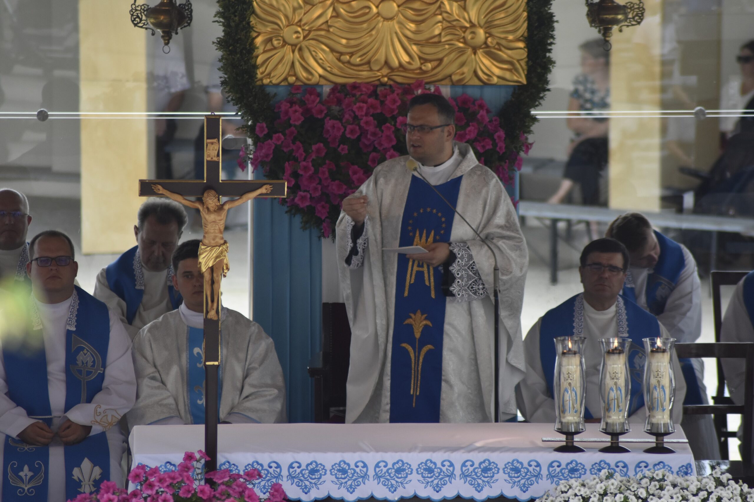 Mszy Świętej dla dzieci przewodniczył o. Grzegorz Gut CSsR. Homilię do dzieci wygłosił o. Piotr Dettlaff CSsR, który w pięknych słowach zwrócił uwagę na znaczenie obecności Maryi: „Zobaczcie, Ona na obrazie w tuchowskim sanktuarium nie jest sama. Oprócz róży trzyma Pana Jezusa – tak jakby chciała tobie i mnie podarować największy prezent; tak jakby dzisiaj, tutaj w Tuchowie, chciała powiedzieć tobie: Przyjmij mojego Syna do swojego serca”.