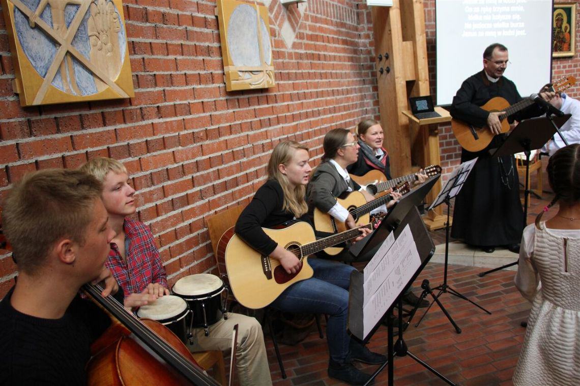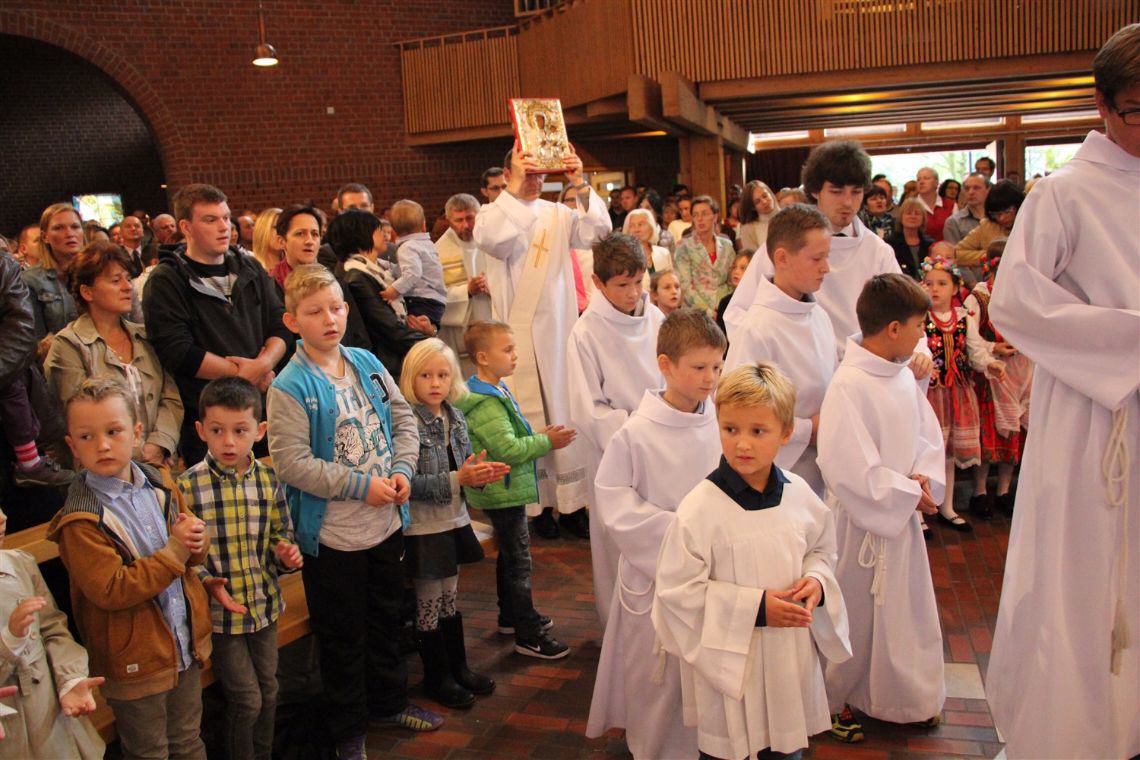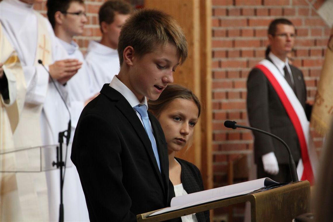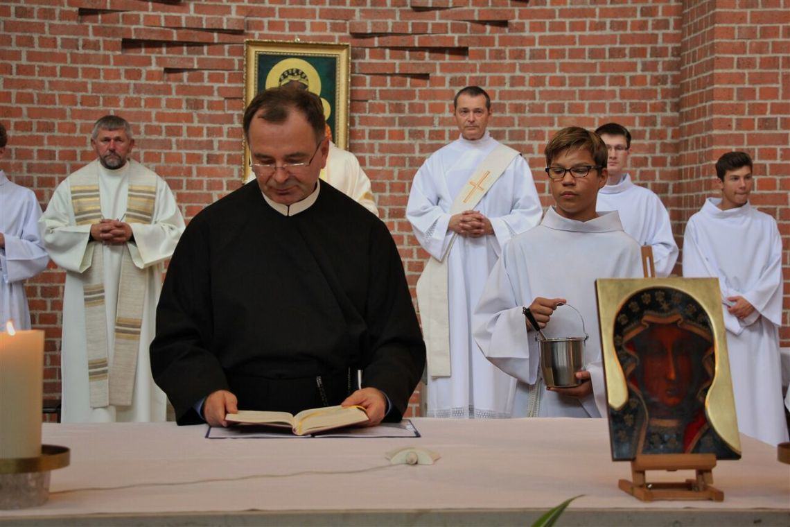 Uroczystej Mszy św. przewodniczył o. Wiktor Bokhan CSsR, który również wygłosił kazanie do dzieci oraz poświęcił przybory szkolne pierwszoklasistom. Została też poświęcona ikona Matki Bożej Częstochowskiej – dar o. Tadeusza Rydzka CSsR dla naszej wspólnoty parafialnej. Natomiast po Mszy św. w sali parafialnej wychowawcy przyjmowali zapisy uczniów do poszczególnych klas w naszej Szkole. Od przedszkolaków po gimnazjalistów do szkoły zapisało się prawie dwustu uczniów.