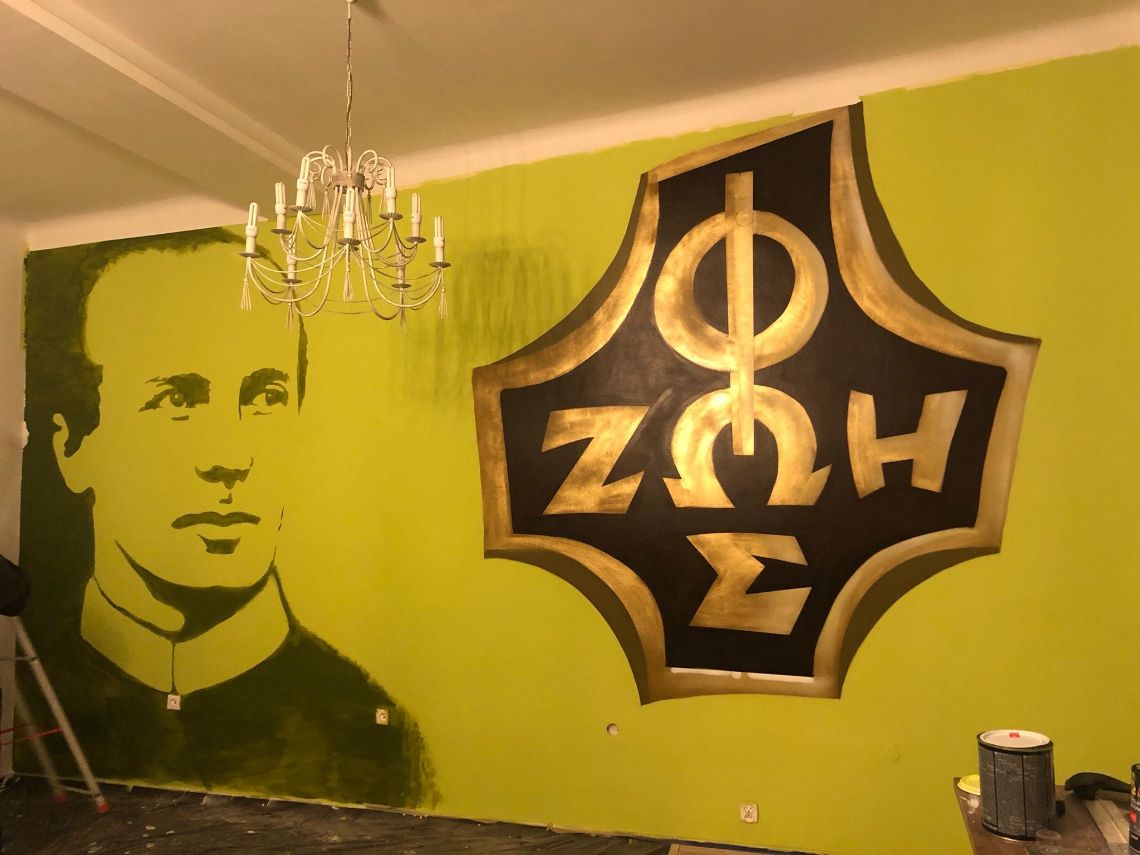 Praca nad grafiką o. Zyskowskiego rozpoczęła się już przed świętami Bożego Narodzenia 2021 r., były przemyślenia, trzeba było przygotować szablony, projekty, zaplanować rozmieszczenie obrazu i napisów. Samo malowanie trwało tydzień. Naturalnie praca nie trwała cały dzień, ale kilka godzin w zależności od czasu i innych obowiązków.