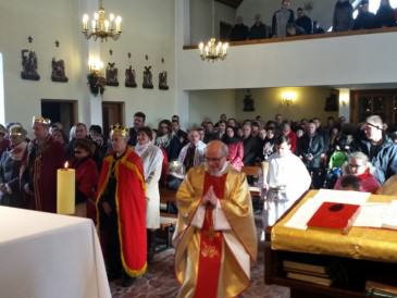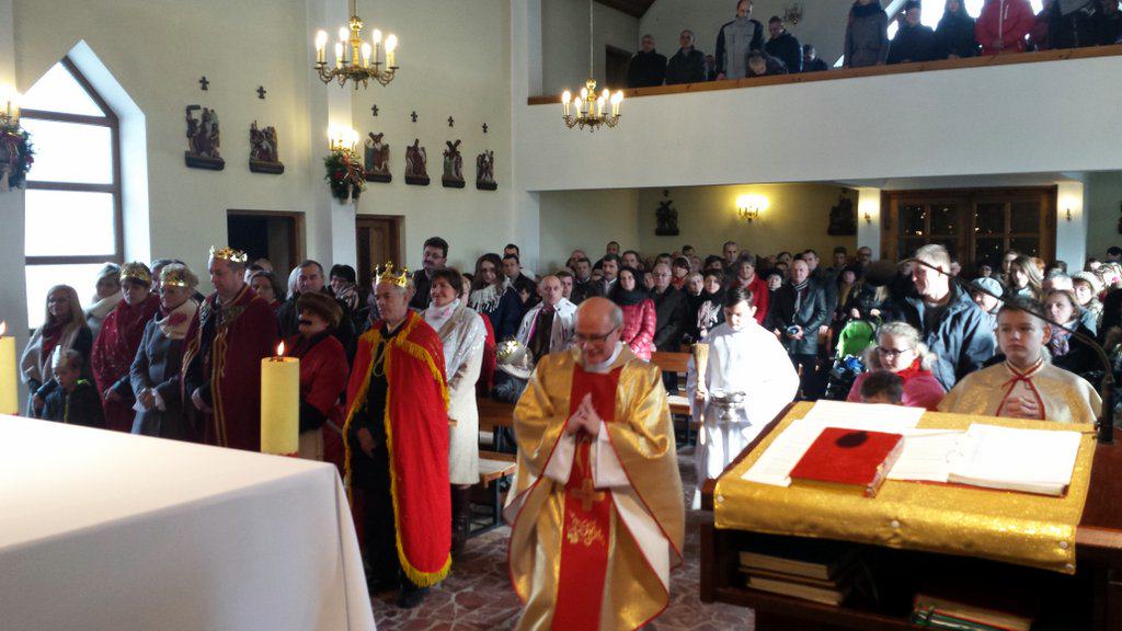 Obecni byli też bracia nowicjusze oraz ubrani w stroje Trzech Króli aktorzy miejscowej grupy teatralnej, która kilka dni wcześniej w remizie OSP wykonała jasełka oparte na motywach sztuki „Betlejem polskie” Lucjana Rydla.