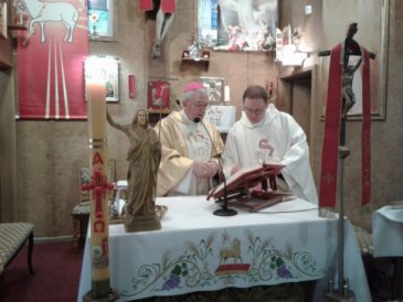Ks. abp Celestino Migliore nie zapomniał o współcześnie żyjących tu katolikach. I dlatego nasza wspólnota cieszyła się również obecnością Dostojnego Gościa, za co jesteśmy mu bardzo wdzięczni. Nuncjusz odprawił w naszej tymczasowej kaplicy Mszę św. za naszą parafię i parafian. W homilii zauważył, iż niewielka grupa ludzi uwierzyła w Zmartwychwstanie Chrystusa. Jednak ta niewielka grupa napełniła cały świat tą wiarą. Nie dlatego, że byli tak zdolni, a dlatego, że przyjęli dary Ducha Świętego, który umocnił ich do składania świadectwa. Zauważył także, że ksiądz Galasso nie tyle słowem, co czynem głosił Chrystusa w tych ciężkich czasach komunizmu. Zachęcał nas, abyśmy szli za przykładem kapelana Włochów w środku Rosji.