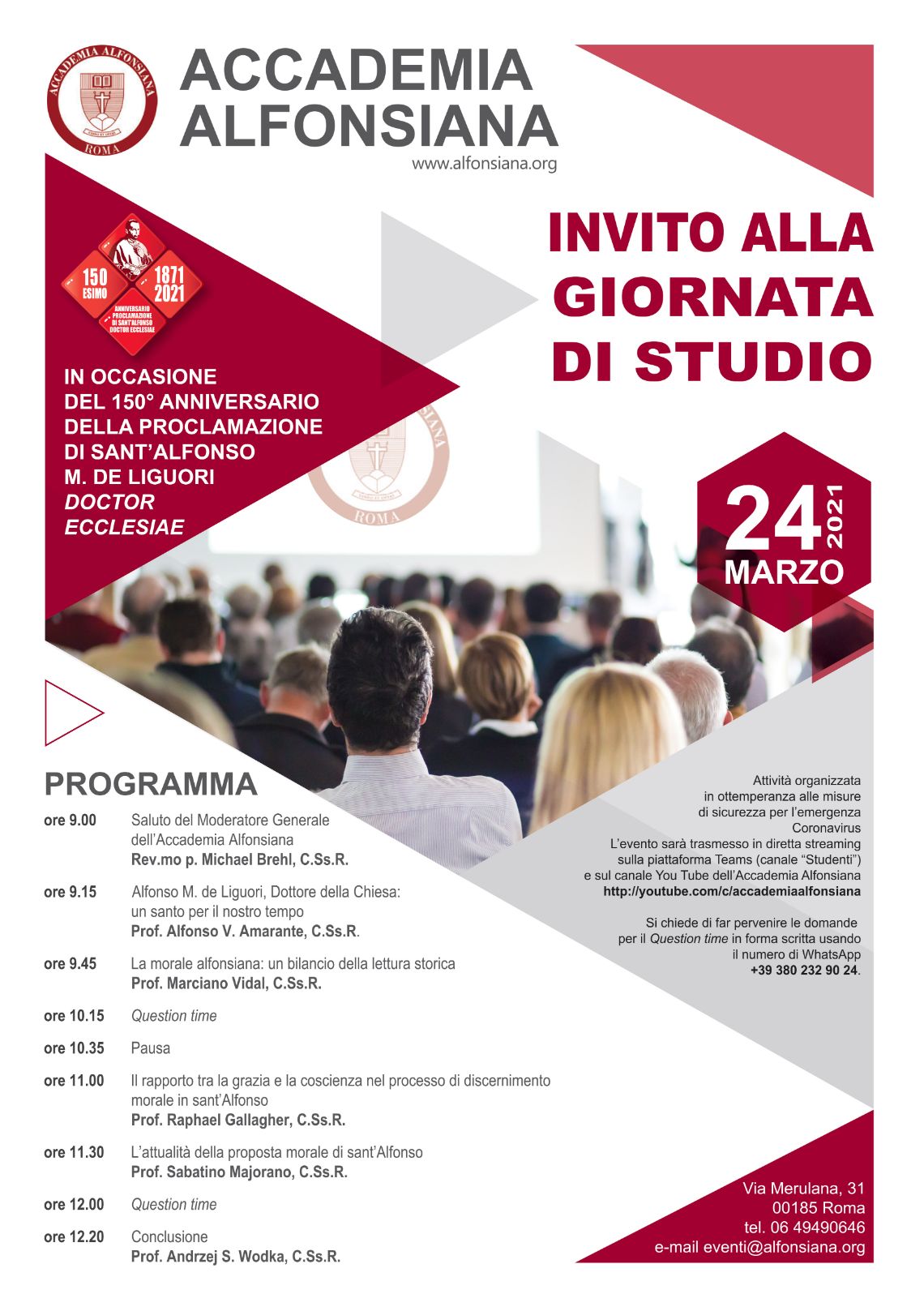 Konferencja odbędzie się 24 marca 2021 r. w godz. 9.00 – 12.30. Wydarzenie będzie transmitowane dla ogółu zainteresowanych na żywo na kanale YouTube Accademia Alfonsiana: