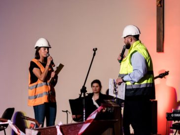 Zaproszonych gości przywitał widok taczki, taśmy, tablicy informacyjnej. W specyficznej scenerii konferansjerzy Kornelia Paszak i Jakub Pruszek przedstawili historię pary, która poznaje się na budowie. W doskonały sposób wprowadzali nas w romantyczny nastrój.