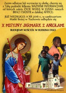 Już po raz dziesiąty tuchowski „Jarmark z Aniołami” zbierać bedzie środki na wsparcie misji, tym razem na wsparcie polskiego redemptorysty misjonarza, o. Marka Marszałka, prowadzącego budowę sanktuarium Matki Bożej Nieustającej Pomocy w Burkina Faso w Afryce. 11 grudnia 2016 r. Jarmark otworzy swoje podwoje.