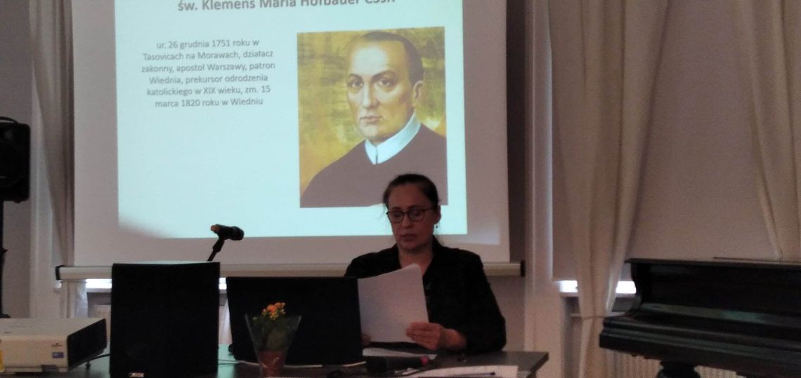 Pani doktor mówiła o postaci św. Klemensa Marii Hofbauera i znaczeniu Zgromadzenia Najświętszego Odkupiciela dla kultury muzycznej Warszawy na przełomie XVIII i XIX wieku. Przedstawiła odkryte w ostatnim czasie źródła muzyczne m.in. śpiewniki benońskie, zawierające liczne pieśni w różnych językach, które były wykonywane podczas nabożeństw w kościele św. Benona. Odkrycia te w istotny sposób wzbogacają naszą dotychczasową wiedzę o muzycznej działaności pierwszych redemptorystów w Warszawie.