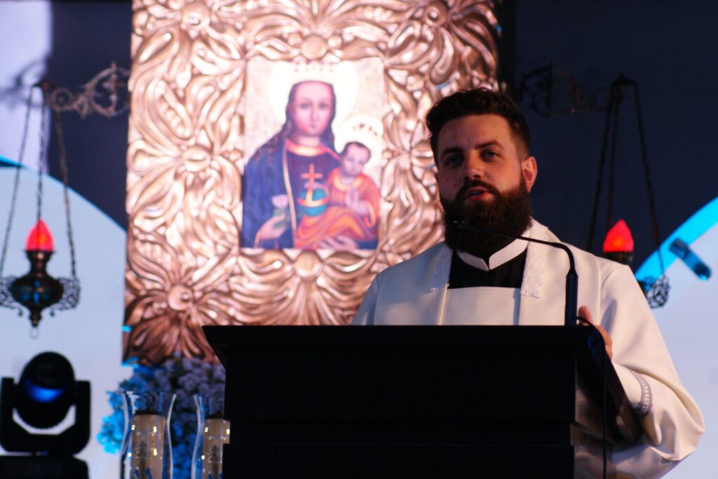 W swojej homilii skupił się on na rozważaniu tajemnicy konsekracji: „Jak 120 lat temu, podczas koronacji Cudownego Obrazu Pani Tuchowskiej, osoby konsekrowane otaczały obraz, tak po dzień dzisiejszy osoby konsekrowane przybywają do tego miejsca”. W dalszej części kazania o. Adam podkreślił fakt, że Maryja była pierwszą osobą konsekrowaną, która powiedziała Bogu „Fiat”.