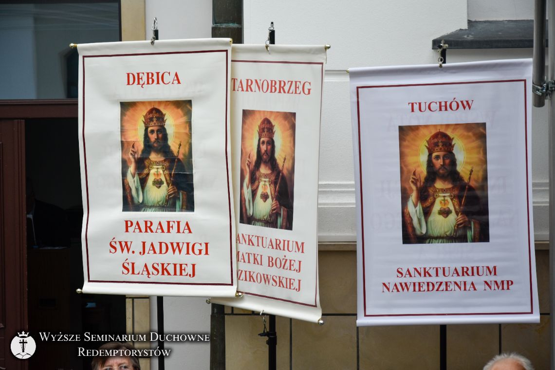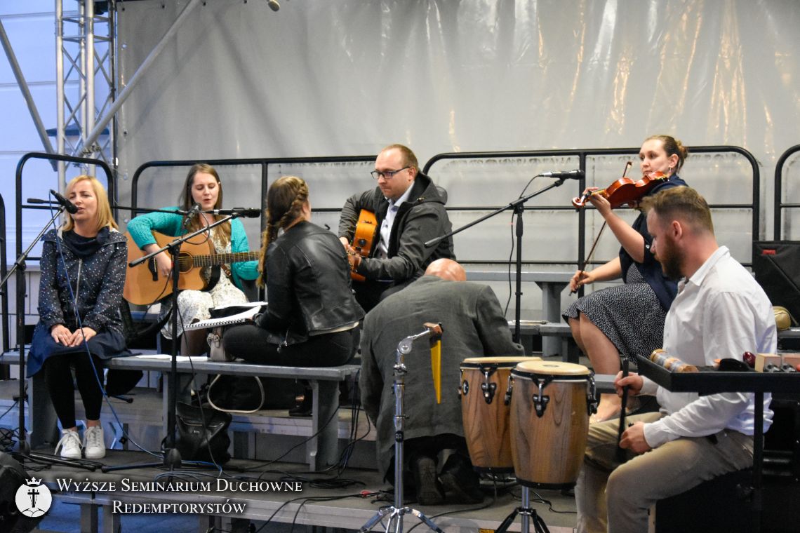 Eucharystia o godzinie 9:00 była bardzo szczególna, ponieważ brała w niej udział pielgrzymka Wspólnot dla Intronizacji Najświętszego Serca Pana Jezusa. Głównym celebransem był ojciec Waldemar Sojka CSsR, natomiast słowo Boże wygłosił ojciec Łukasz Baran CSsR.