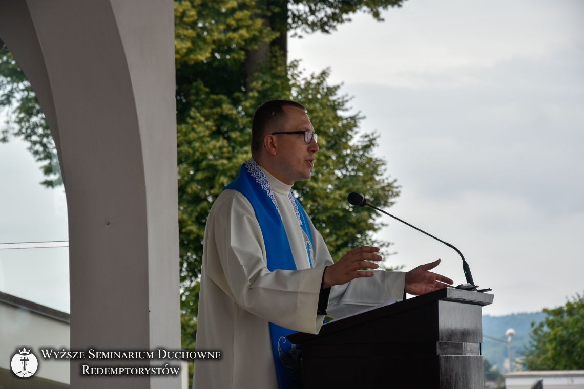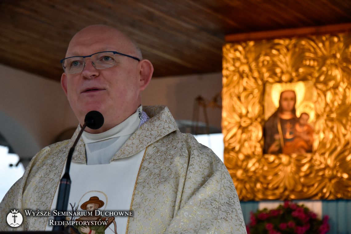 Eucharystię o godzinie 7:00 celebrował, jak i kazanie odpustowe wygłosił, ojciec Józef Szczecina CSsR, redemptorysta, misjonarz posługujący w Warszawie. Kwadrans powołaniowy, drogę krzyżową i koronkę do Bożego Miłosierdzia prowadziły dzisiaj Siostry Służebniczki Dębickie. Opowiadały one o swoim założycielu bł. Edmundzie Bojanowskim i dzieliły się radością swojego powołania.