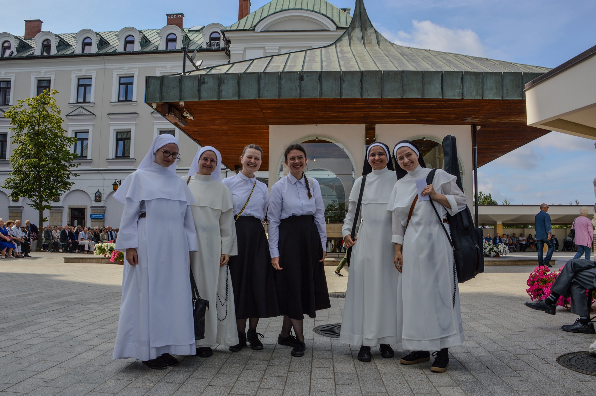 Po Eucharystii wyruszyliśmy w procesji do wnętrza bazyliki, aby tam dziękować za dobro całego dnia podczas apelu maryjnego. Zostaliśmy na dłużej, ponieważ w świątyni odbył się koncert Sanktuaryjnej Scholi Liturgicznej, redemptorystów oraz Sunday Quarter i Chór Oratoryjny „Paradiso” podczas codziennego wieczoru maryjnego.