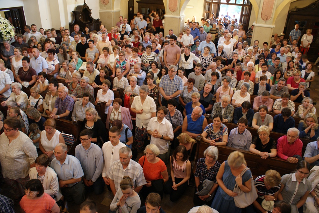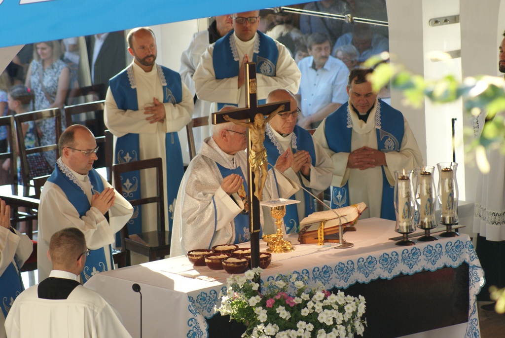 Po modlitwie w intencji powołań, poprowadzonej przez siostry Sługi Jezusa z Burzyna, rozpoczęliśmy Eucharystię. Licznie zgromadzeni na placu pielgrzymi, między innymi członkowie pielgrzymki emerytów i rencistów, razem zaśpiewali tegoroczne hasło odpustu, kiedy procesja kroczyła w stronę ołtarza. Mszy Świętej przewodniczył ks. prałat Józef Mróz. Wyraził radość, że już od wielu lat wierni mogą przybywać przed oblicze Matki Tuchowskiej i otrzymywać tu mądrość i błogosławieństwo.