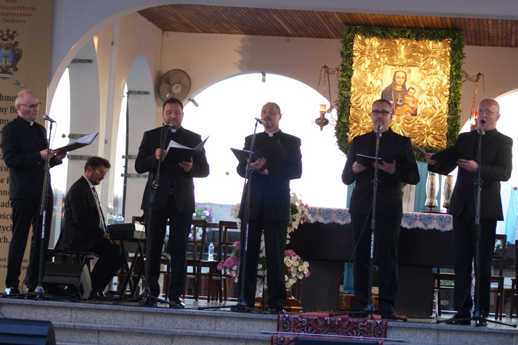 Około godziny 20:00 rozpoczęliśmy Wieczór Maryjny. Dzisiaj mieliśmy zaszczyt wysłuchać koncertu zespołu „Servi Domini Cantores” – „Śpiewających Sług Pana”. Zespół składa się z księży wokalistów, absolwentów i obecnie profesorów akademii muzycznych z całego kraju, m. in. o. dr. Tomasza Jarosza CSsR. Ich wspaniały śpiew z okazji dwóch jubileuszy, jakie wybrzmiewają podczas odpustu, zakończył piąty dzień Wielkiego Odpustu Tuchowskiego.