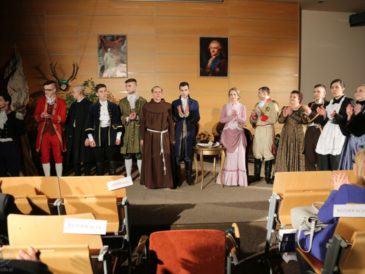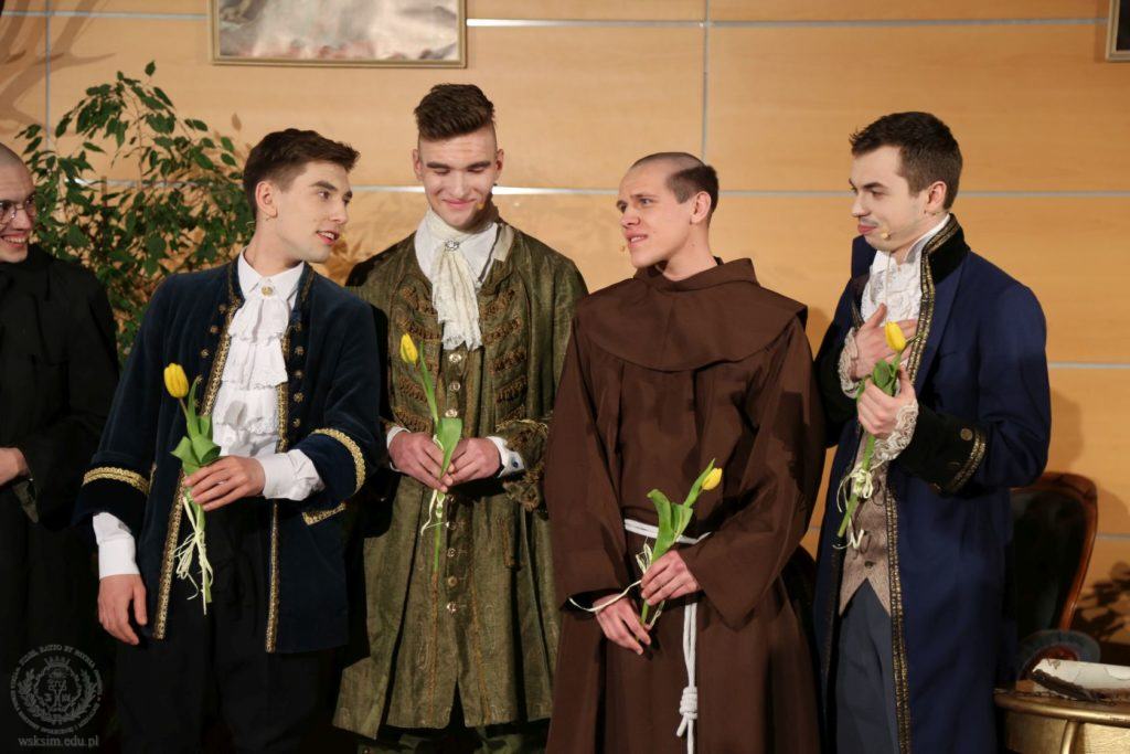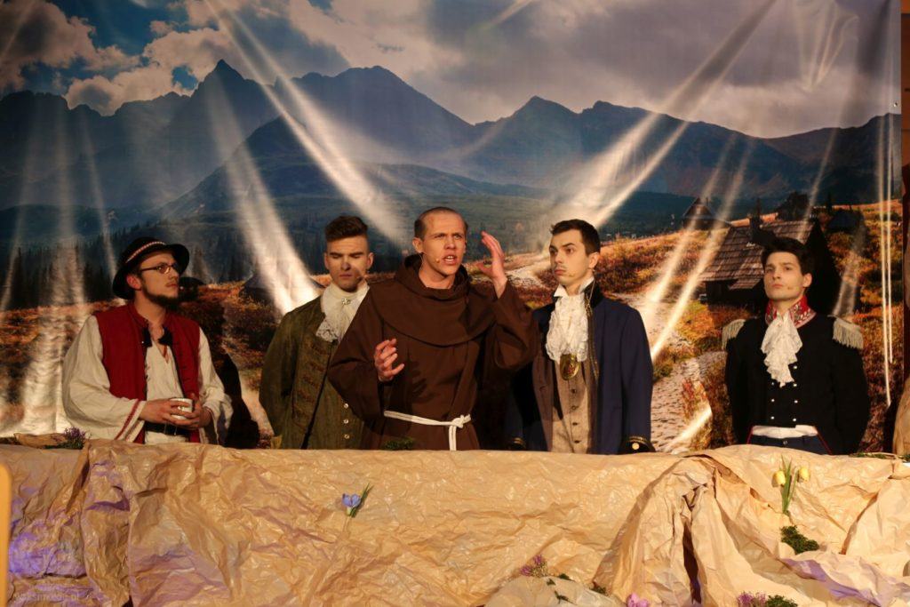 – Jestem zaskoczona poziomem gry aktorskiej prezentowanym przez studentów, ilością zapamiętanego tekstu, naturalnością gry, zaangażowaniem w przedstawienie charakteru odtwarzanych postaci. Do tego pomysłowa scenografia i kostiumy, ciekawe zestawienie słów wypowiadanych na scenie z muzyką i odgłosami dobiegającymi spoza sceny. W spektakl wprowadza krótkie opowiadanie będące zarysem sytuacji politycznej, która doprowadziła do zawiązania Konfederacji. Ze wstępu dowiadujemy się także, dlaczego został wybrany właśnie ten dramat w kontekście namysłu nad niepodległością – to rozszerzyło moją wiedzę o wydarzeniu, które de facto było pierwszym narodowym zrywem. W czasie trwania spektaklu zaśpiewałam z aktorami Pieśń Konfederatów Barskich i odmówiłam Pod Twoją Obronę – wplecione w sztukę i angażujące widzów. Bardzo polecam obejrzenie inscenizacji – zachęca siostra Aleksandra Szyborska, Uczennica Boskiego Mistrza.