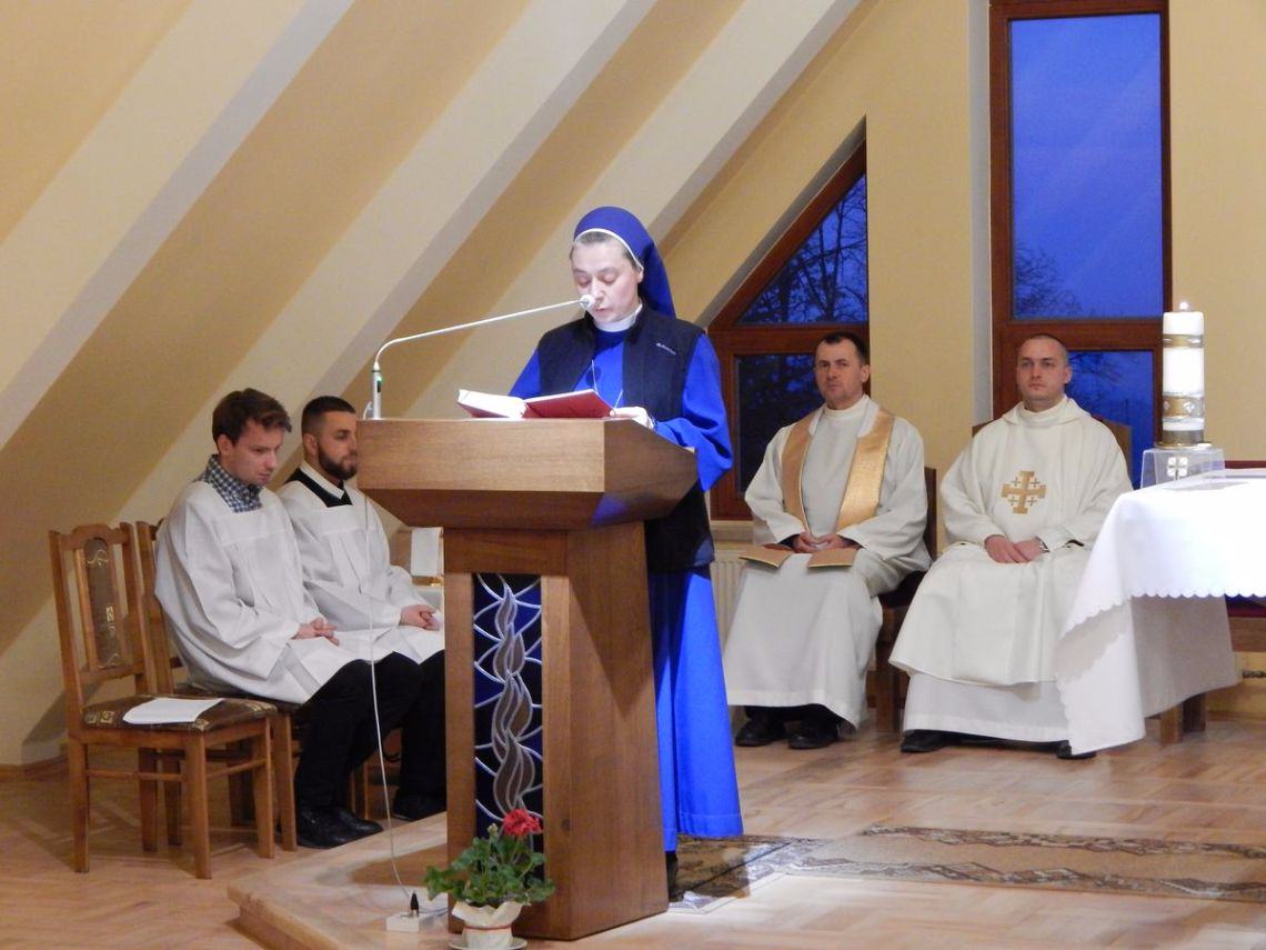 Niedziela, która była na zjeździe dniem skupienia, rozpoczęła się dla uczestników rozmyślaniem prowadzonym według metody św. Alfonsa Liguori. Eucharystię przeżywaliśmy razem ze wspólnotą nowicjatu i wiernymi przybyłymi do kaplicy pw. Wniebowzięcia Matki Bożej. Po zakończonej Mszy św. i przerwie na kawę wysłuchaliśmy dwóch konferencji, które wygłosił przewodniczący Zespołu. Ważne, aby nie błyszczeć własną mądrością, ale głosić Słowo Boże, głoszenie zaś aby było skuteczne, wymaga życia tym Słowem, nie tylko „odliterowania go”. Niezbędne jest trwanie w świadomości, że jeśli przeżywamy nawet najbardziej traumatyczne sytuacje nie oznacza to, że Panu Bogu „świat wymknął się z ręki”, On to zaplanował, ale powinniśmy Jego wolę odczytywać w świetle Biblii. Myśli te, to zasadnicze przesłanie opartych na Piśmie św. rozważań o. Witolda. Aktywnym włączeniem się w przeżywaną w Kościele w Polsce Niedzielę Biblijną, było odczytanie na głos przez uczestników zjazdu całej Księgi Jonasza, co stanowiło wstęp do drugiej konferencji.