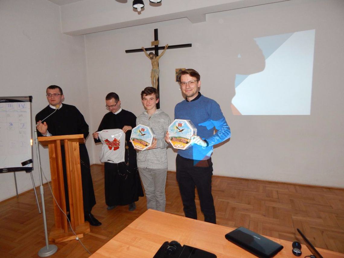 Niedzielne popołudnie było czasem odpoczynku, który – w zależności od preferencji – połączony był z wyjściem na Brzankę lub spacerami w bliższej okolicy domu rekolekcyjnego. Ważnym punktem dnia była adoracja Najświętszego Sakramentu. Wieczorem, po raz pierwszy w historii naszych zjazdów, odbył się quiz wiedzy o duchowości redemptorystowskiej. Było to nawiązanie do krótkich, przygotowanych przez redemptorystów będących członkami Zespołu, opracowań najważniejszych zagadnień duchowości redemptorystowskiej, które świeccy z zespołu Misyjnego „Wschód, w ciągu obecnego roku formacji, regularnie otrzymują drogą mailową. Ten wspaniale zorganizowany przez braci kleryków turniej, nazwany „Redemptoristiadą”, był okazją do sprawdzenia i pogłębienia swojego zasobu wiadomości o Zgromadzeniu Najświętszego Odkupiciela, ale także wprowadził nastrój radości i wspólnej zabawy.
