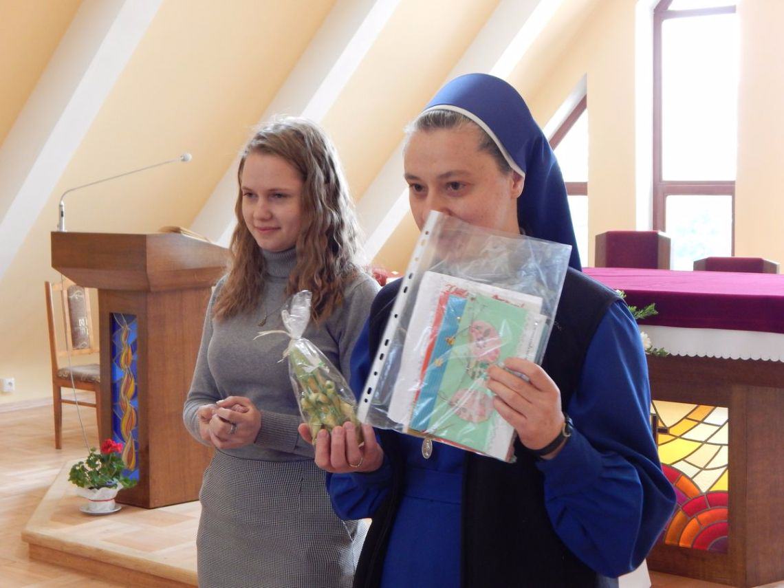 Warto w tym momencie wspomnieć o szczególnych uczestnikach zjazdu: s. Tatianie Khalapuk i Inessie Zharlikowej, które przyjechały z Białorusi. Siostra Tatiana, która pracuje w Swietłogorsku (miasto położone w południowo – wschodniej Białorusi, w obwodzie homelskim) od 7 już lat współpracuje ze „Wschodem”, każdego lata przyjeżdżając z grupą dzieci na rekolekcje prowadzone przez nas na Białorusi. Inessa natomiast to wychowanka s. Tatiany oraz naszego Zespołu, gdyż wiele razy uczestniczyła w rekolekcjach, obecnie zaś, będąc już studentką, pomaga w ich prowadzeniu. W czasie trwania zjazdu zarówno s. Tatiana jak również Inessa opowiedziały o swoim doświadczeniu współpracy ze „Wschodem” oraz owocach tejże współpracy. Nie zabrakło także wspomnień związanych z najciekawszymi wydarzeniami przeżytymi podczas wspólnych wakacji z Bogiem. Siostra Tatiana pokrótce przedstawiła uczestnikom spotkania specyfikę katechizacji dzieci i młodzieży na Białorusi oraz przekazała kilka cennych wskazówek, istotnych przy planowaniu „wschodowych” rekolekcji w tym kraju.